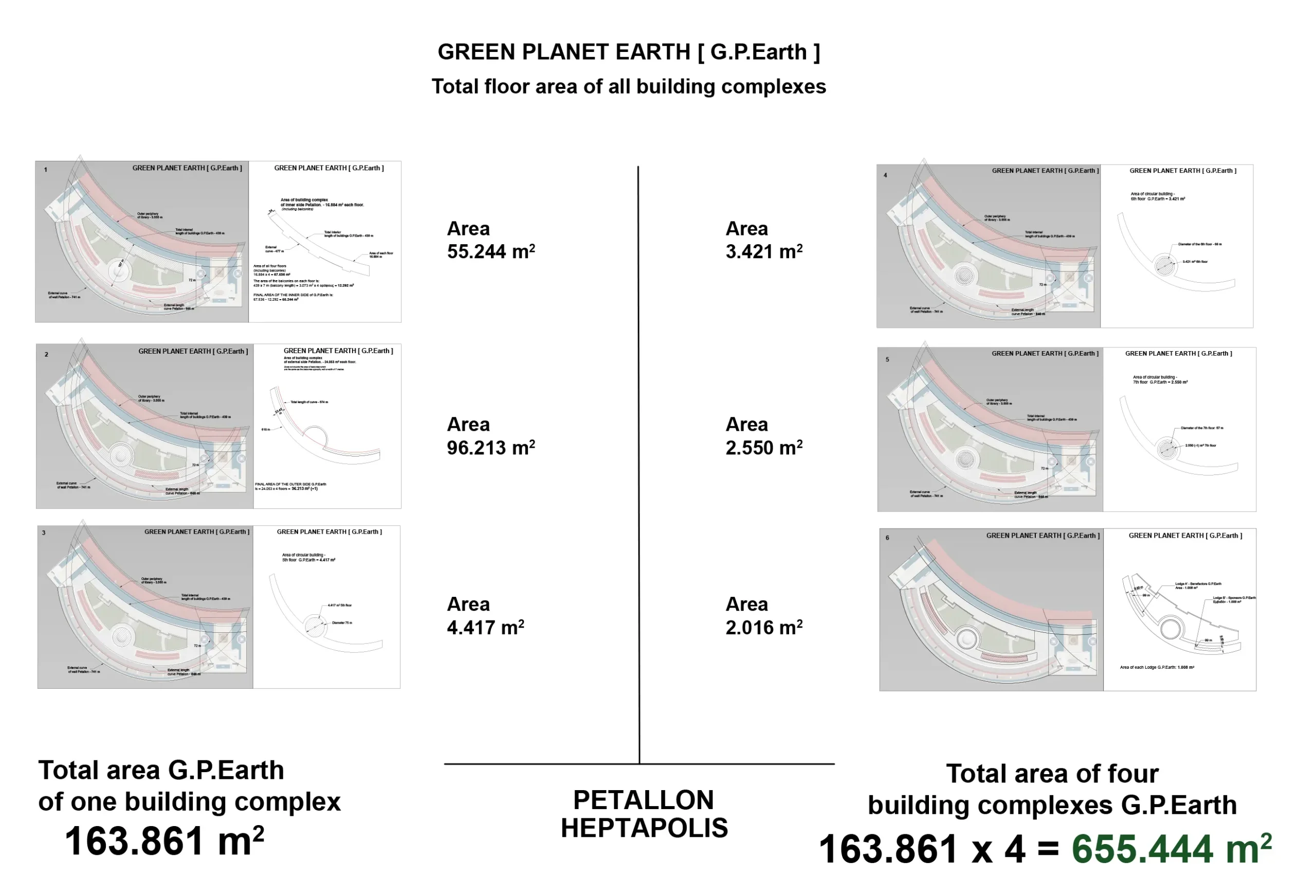 The largest building complex of Heptapolis is the complex “GREEN PLANET EARTH”, built in the 4 “PETALLA” that are connected to each other.